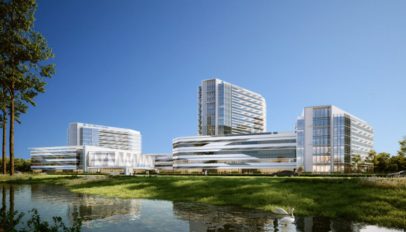 主要建设内容:一期工程建筑面积58609平方米,其中地上44435平方米,地下14174平方米,床位300张。含综合楼一座,地上主楼10层,裙房3层,地下1层,建筑高度50.2米,为一类高层建筑。最大单体综合楼(1号楼)建筑面积为57430平方米,最大单跨跨度为30米。地上主要功能为门急诊、住院、手术、检查等医技科室,地下为汽车库、设备用房、餐厅等。综合楼(1号楼)外配套单体建筑包括污水处理站、开闭站、门卫等。新院区建成后将为本地居民提供更加便捷、高效的医疗服务,为片区民生发展注入澎湃动力。